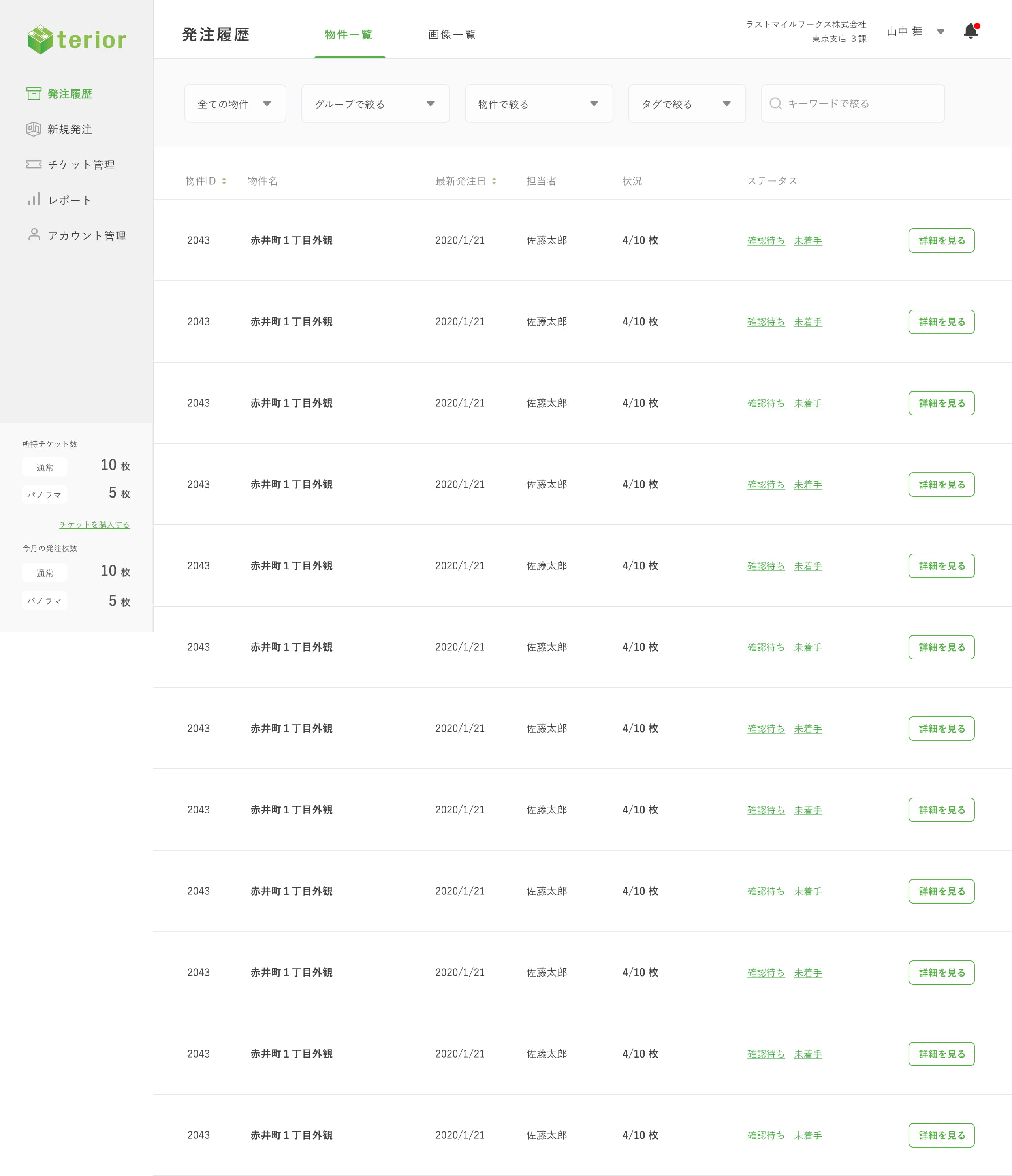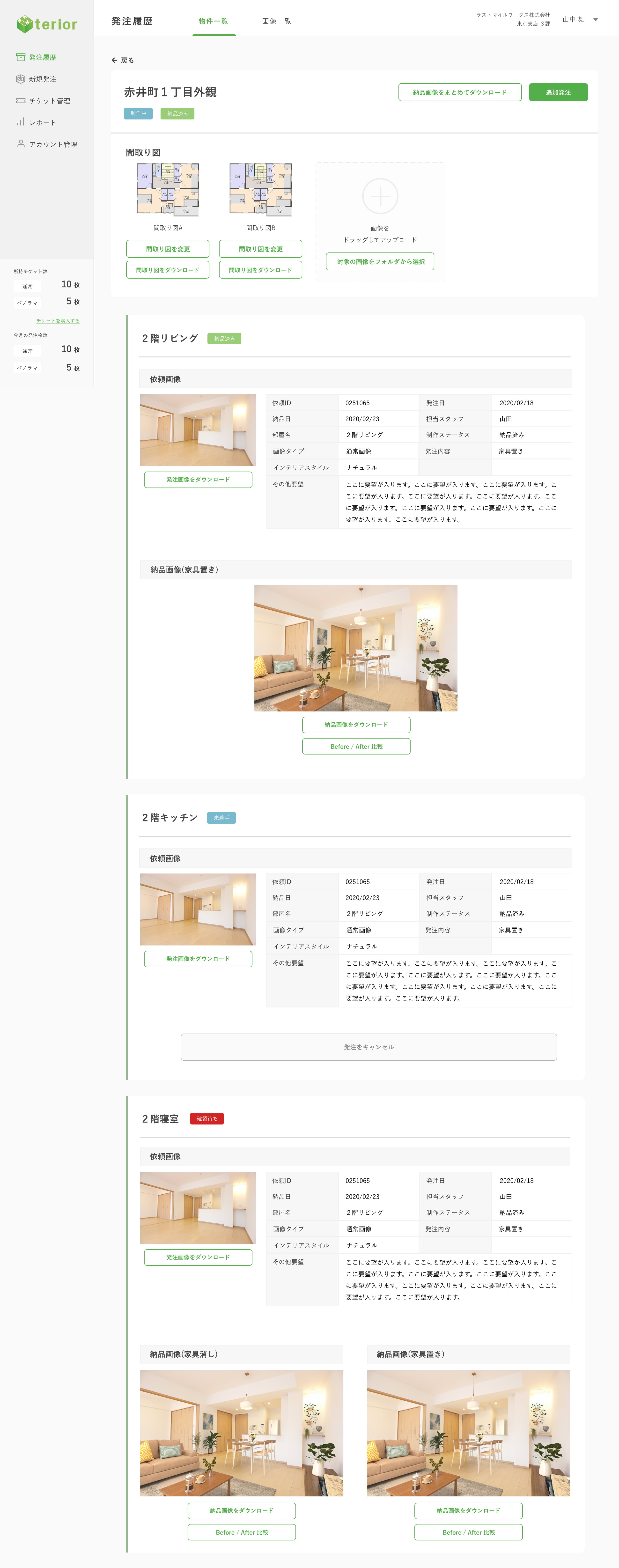 teriorは、メーカー担当者が画像や図面をアップロードするだけで、高品質のCG加工された画像が作成されます。このプロジェクトでは、その発注や加工の修正指示などのフローや、発注履歴や決済周りを改善しました。またCG加工を行うスタッフの管理や発注管理を行うマネージャーが扱う管理画面のデザインも担当しました。